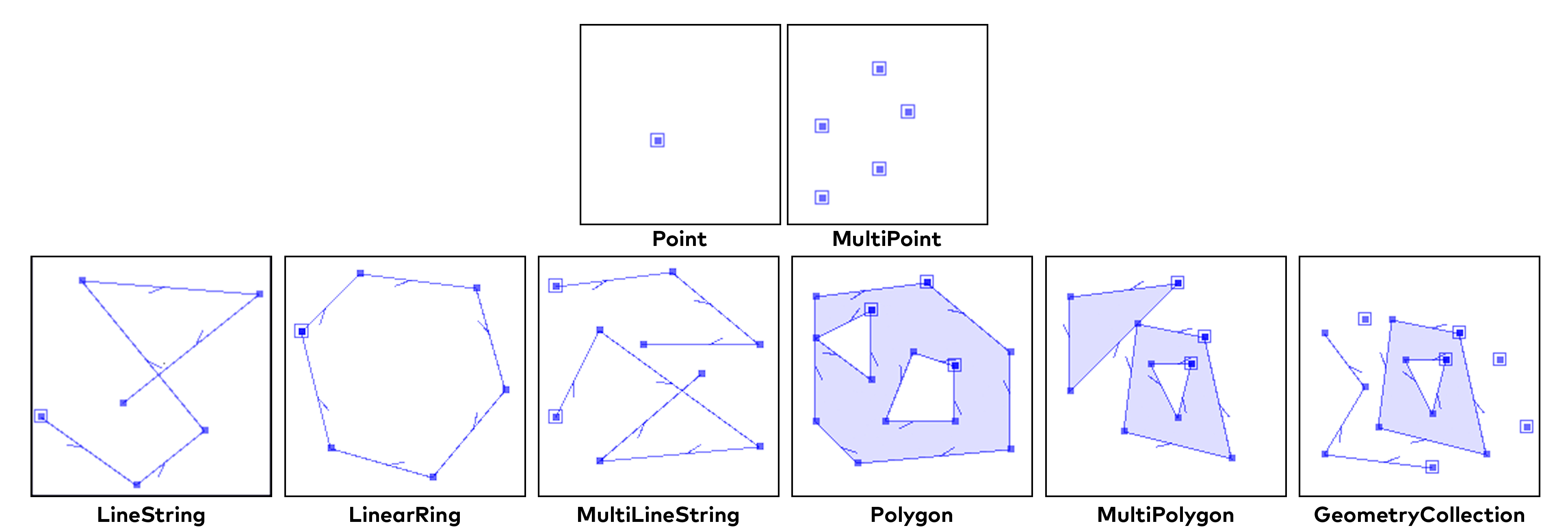 gibi temel geometrik nesneler kolayca oluşturulabilir. Daha karmaşık yapılar için ise MultiPoint, MultiLineString ve MultiPolygon sınıfları kullanılır.