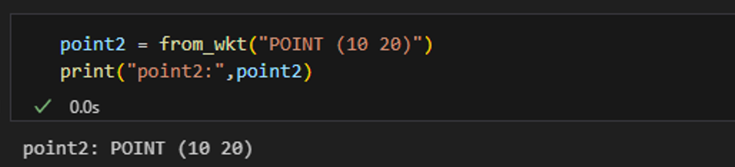 Görsel: from_wkt() fonksiyonu kullanılarak WKT (Well-Known Text) biçimindeki nokta geometrisinin Shapely objesine çevrilmesi