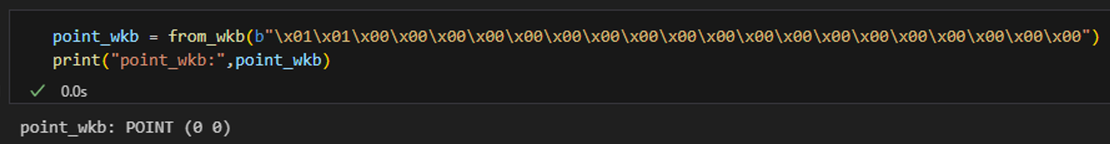 Görsel: from_wkb() fonksiyonu aracılığıyla WKB (Well-Known Binary) verisinden Shapely Point nesnesi oluşturulması.