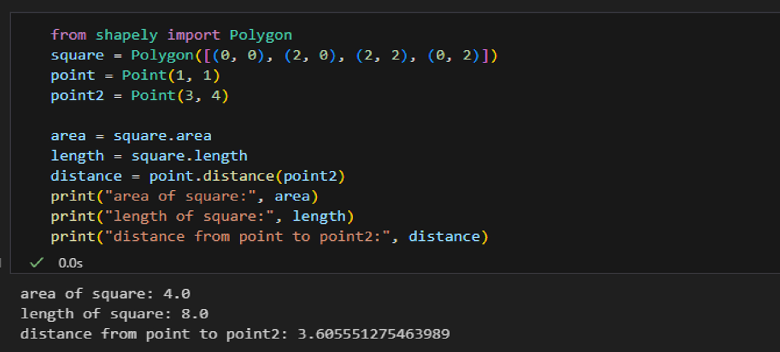 Shapely, geometriler üzerinde alan, uzunluk ve mesafe gibi temel ölçümleri hızlıca yapmanızı sağlar.