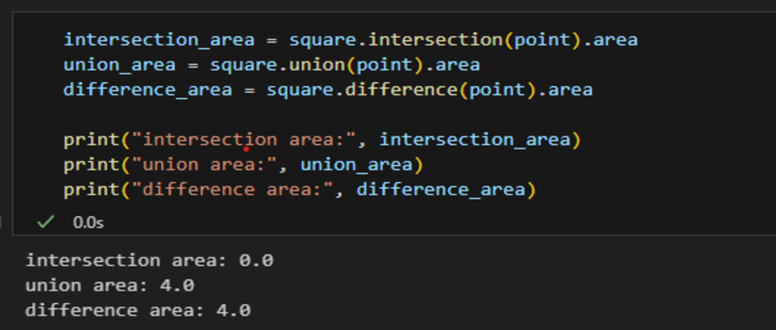 Shapely ile geometriler üzerinde kesişim, birleşim ve fark işlemleri kolayca yapılır: