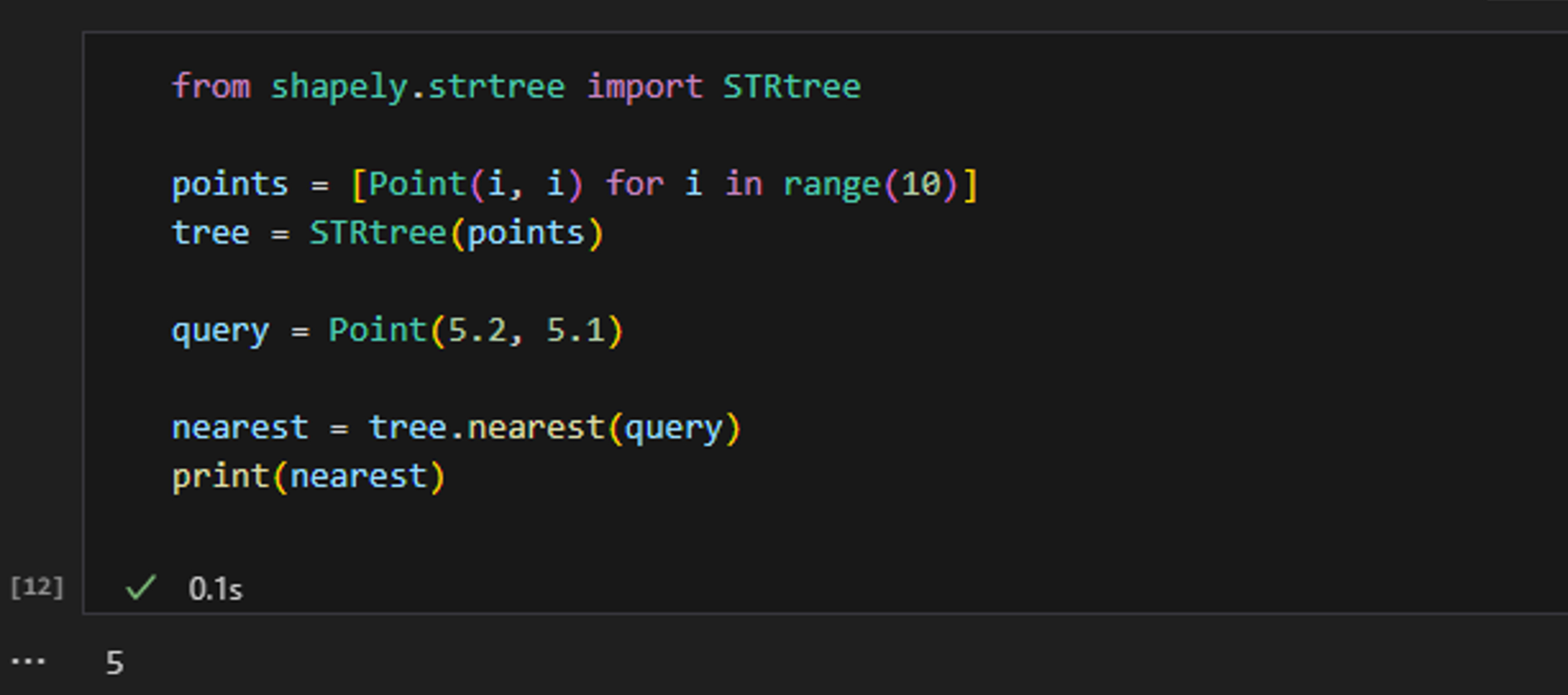 Büyük veri kümelerinde her geometriyi tek tek karşılaştırmak çoğu zaman çok yavaş ve verimsizdir. Shapely’nin sunduğu STRtree (Spatial R-tree) özelliği mekânsal sorguları çok daha hızlı hale getirir.
