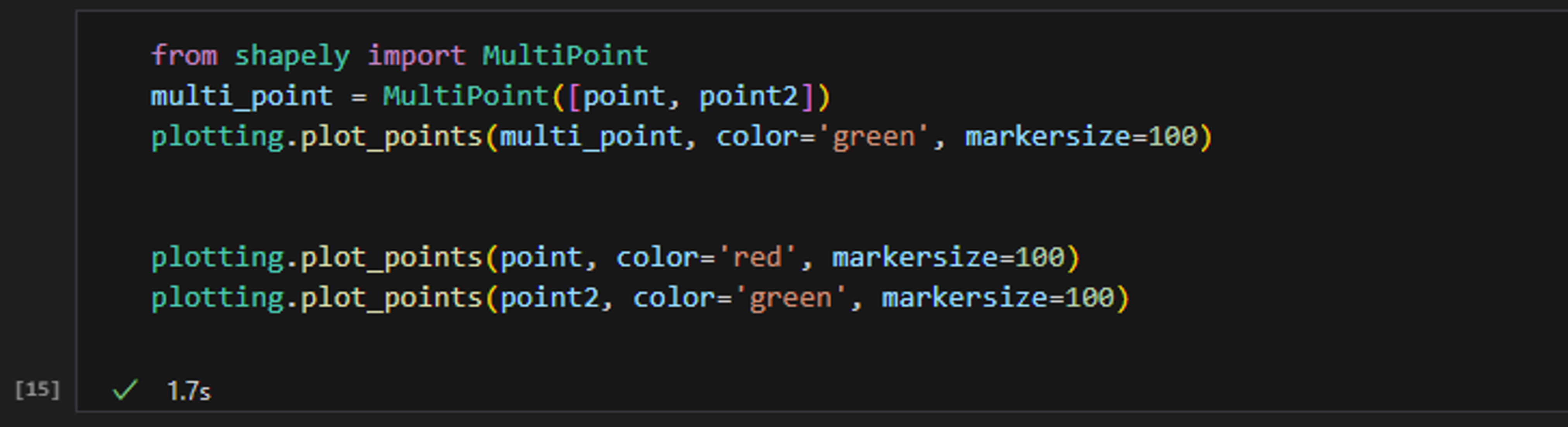 Aşağıdaki örnekte iki nokta (Point) ve bu noktaların birlikte oluşturduğu bir MultiPoint görselleştirilmektedir:
